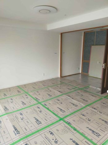 大切な床を守る全面養生シート張りこれが少し一人でするのが大変・・・・!