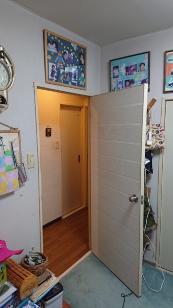 ![]() リビング入口も一新 ホワイト扉から床と同じ色合いに変更いたしました。 パナソニックのクラフトレーベル扉です。 |