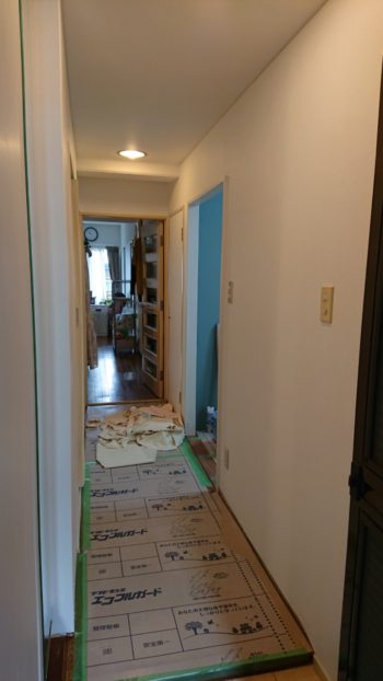 無垢板のフローリング張り、壁紙クロスの模様替え工事です。