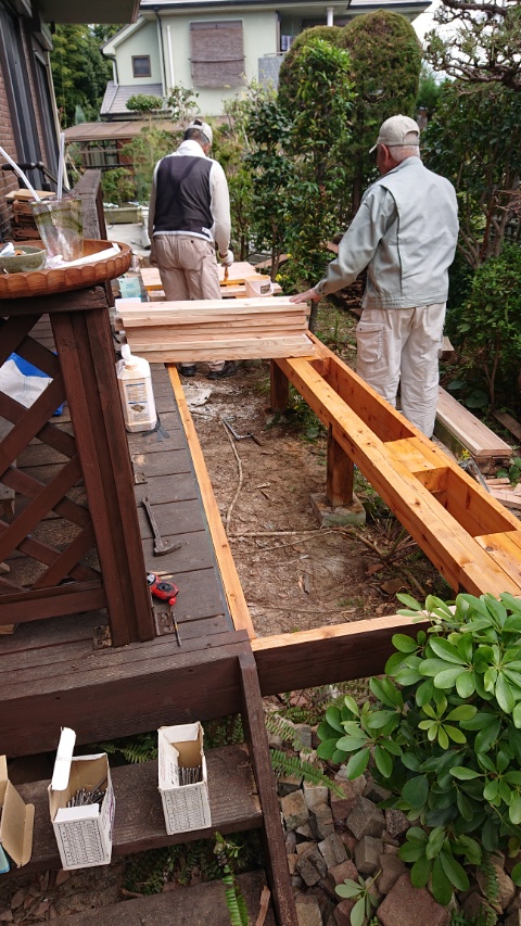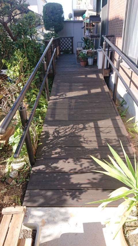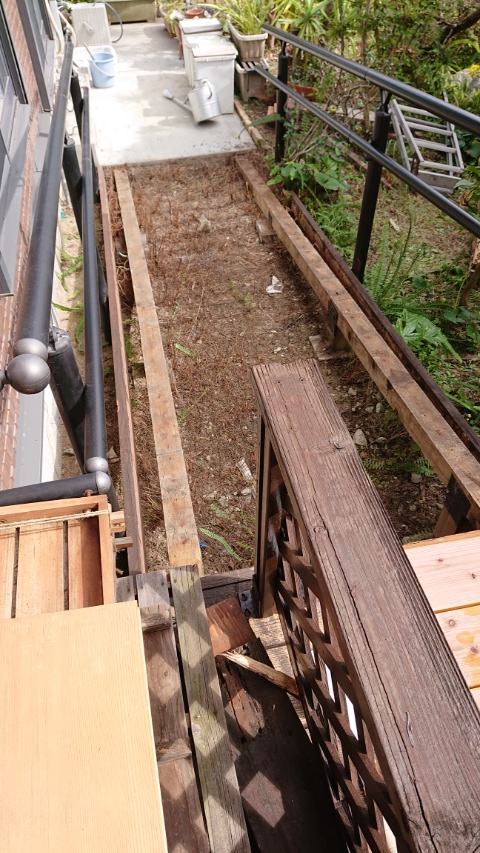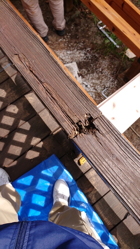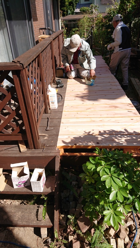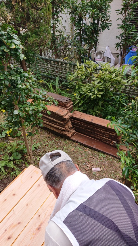 ウッドデッキ部 腐食部分の張替えを行いました。杉板材