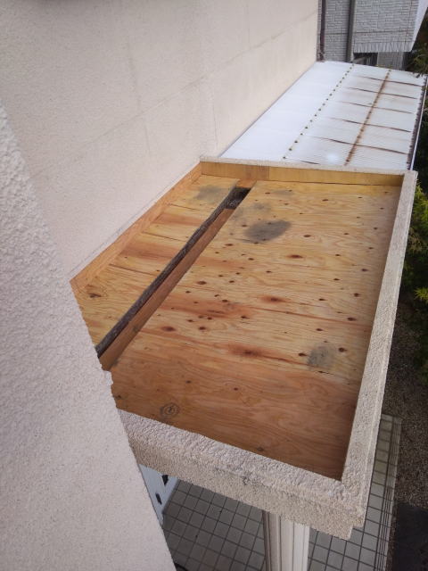表面の防水シートが下地合板から剝がれ掛かっていましたが、