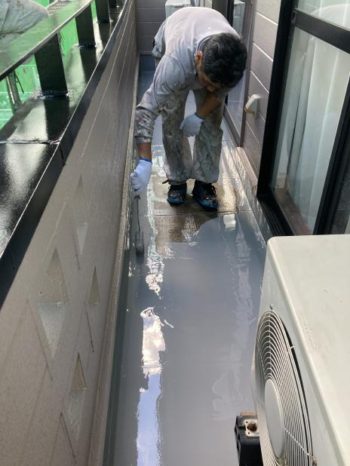 ひび入っていたベランダの土間も防水塗装しました。