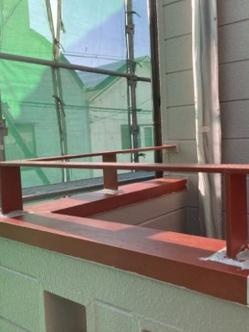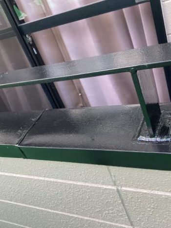 雨漏りの原因になってそうなベランダの笠木部分もしっかりコーキングして塗装しました。