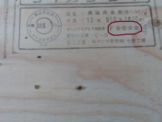 下地合板には、写真のように☆4個のシックハウス対応の合板を使用し、