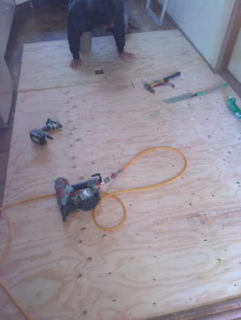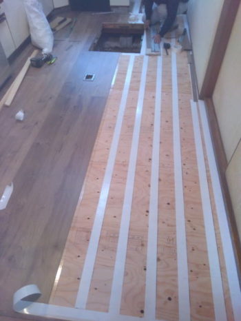 ご相談頂き、上から12ミリ合板捨て貼りで厚さ1.5mmの