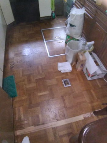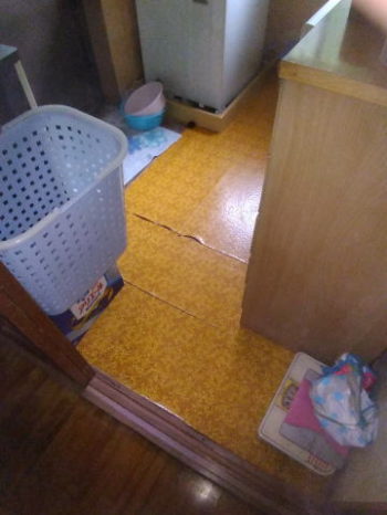 Y様から、台所と洗面室の既存床がフカフカと危険なため