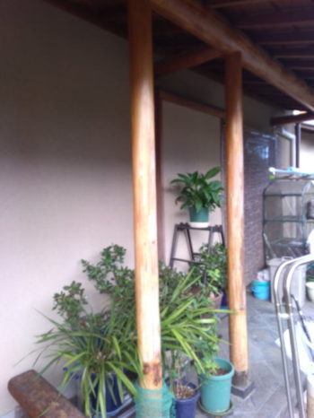 そこで今回、玄関引き違い戸と前面屋根を支えている桁と柱を