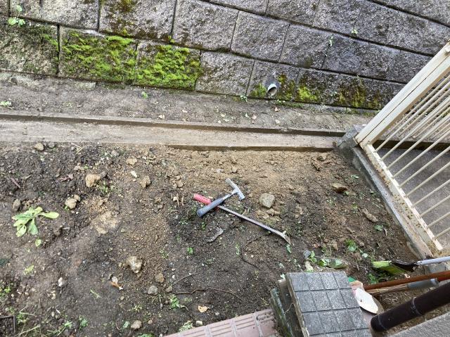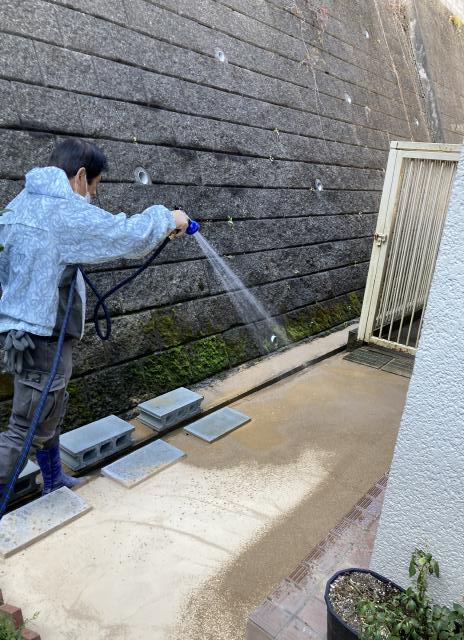 敷き詰めて水をまくだけで工事も簡単2~3日乾かすと完成です。