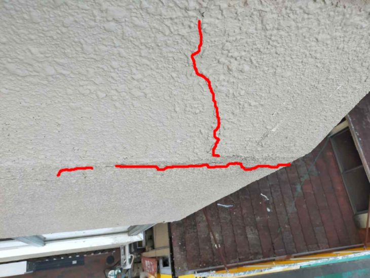 外壁部分、立ち上がりパラペット部分が建物の揺れ等で少しひび割れクラックが!