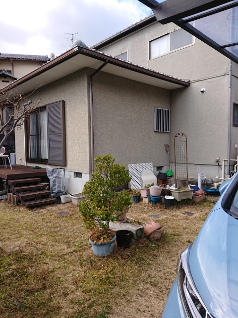 生駒山のふもとにより 前回庭に透水管埋設工事を行いました。庭の南西部分に地下水の水脈があるみたいでかなりの土壌の湿り気です。