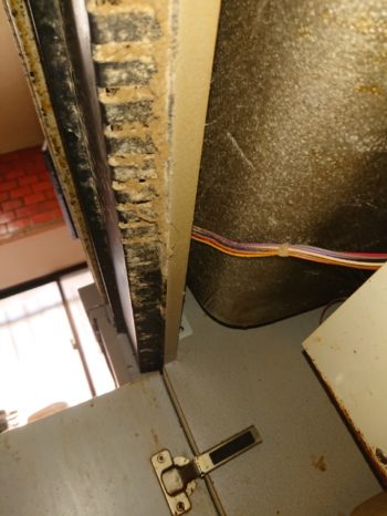 シンク下内部の加工と、操作パネルの取り外しにて左扉の新調になります。