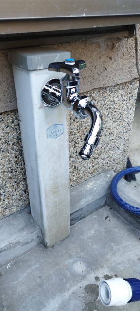 お庭の水栓を、便利なタイプに取替。