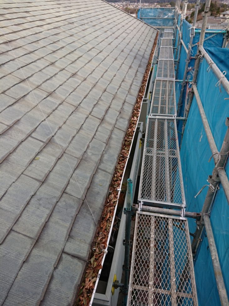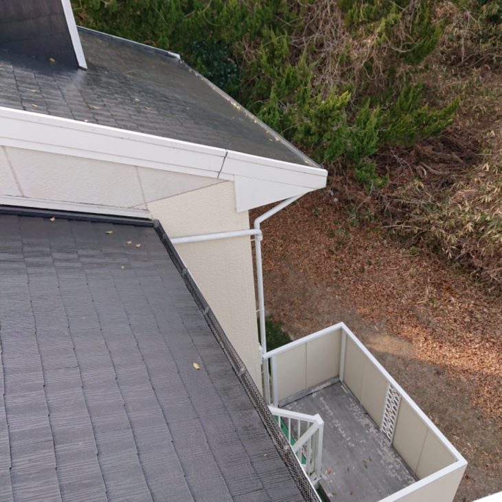 スレート瓦屋根塗装・軒樋 落葉よけネット取付工事
