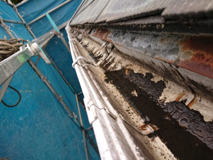 軒樋 落葉よけネット張り ↓ 工事前の軒樋で、枯葉でいっぱいです。 ![]() K塗装様 ありがとうございました。 |