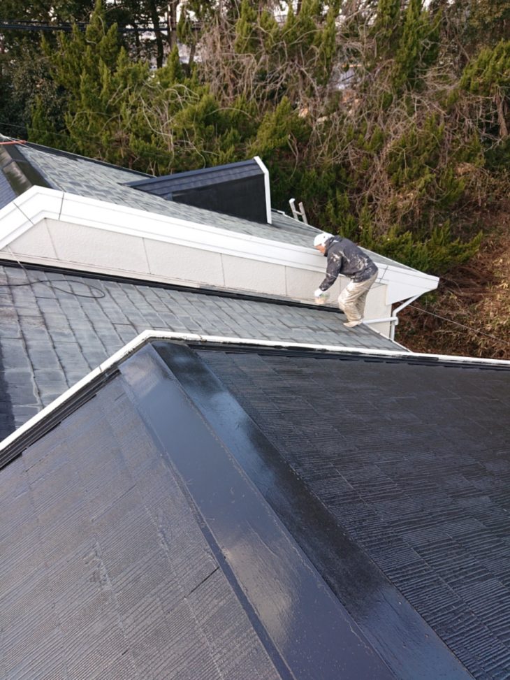 築40年 アパートの2回目のスレート瓦屋根塗装と