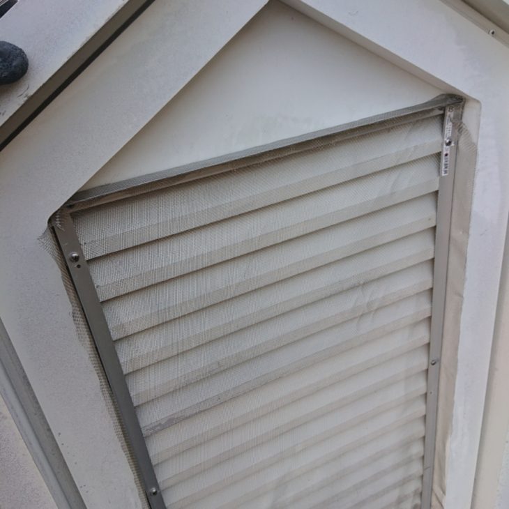 屋根裏換気ガラリ部 防虫ステンレスネット張り↓