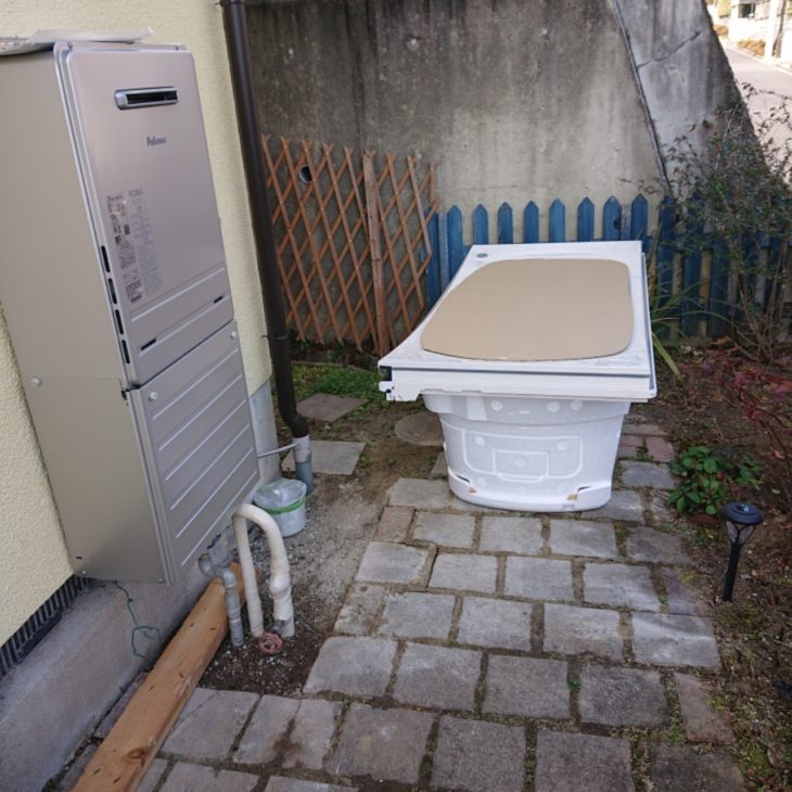 約2週間ほどで給湯器が納入 ↓保温浴槽