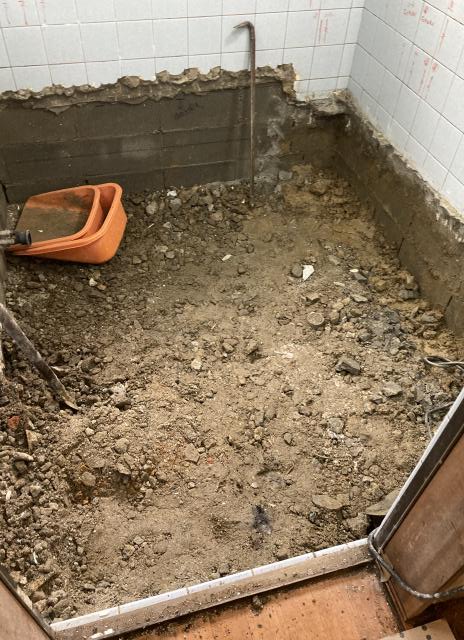 ユニットバス組み立てる前の土間コンクリート工事です。