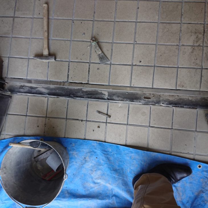 まず土間タイルのめくりからの工事です。