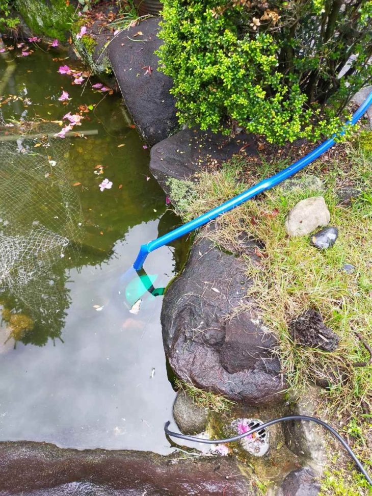 最初に錦鯉さんの引っ越し作業から進めて行き水を抜きます。