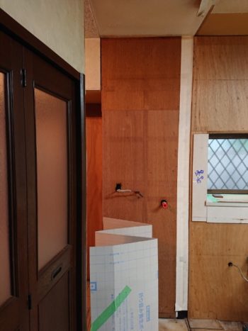 キッチン奥の洗濯機スペースです。左側に洗面所があります。とく