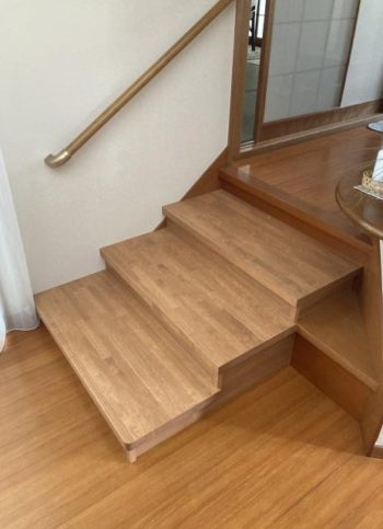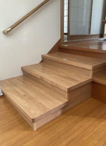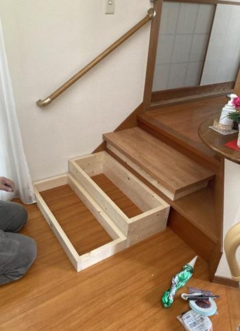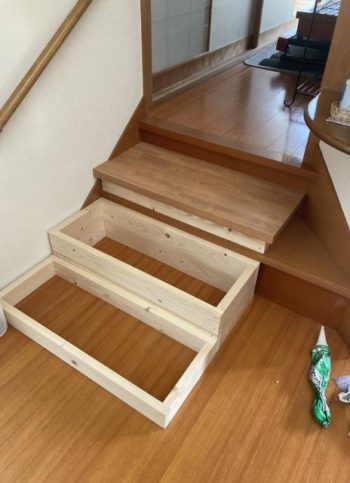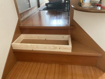 箱を組んでもらって 化粧の踏板とけこみ板側面の板を張り付けてもらいました。