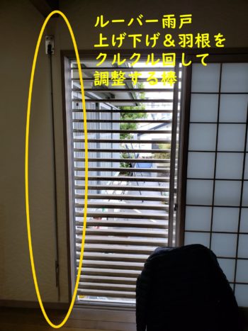 既存の窓は手動式シャッターで室内に手動の長い棒があり