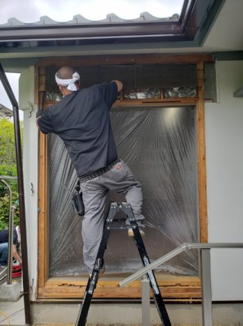 電動シャッター付掃き出し窓の入替