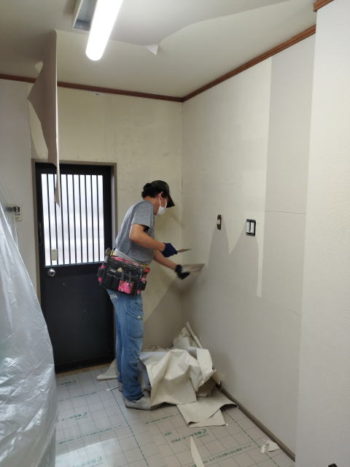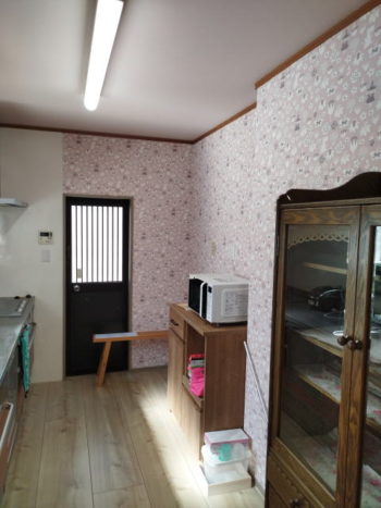 取替させて頂き、二日目は壁と天井のクロスの貼替です。