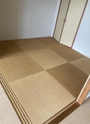 畳はアクセントウォールに合わせて濃い目の琉球畳です。