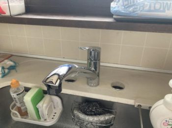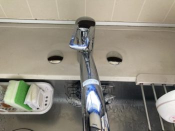 既存の水栓は水とお湯用に2つの穴が開いていて