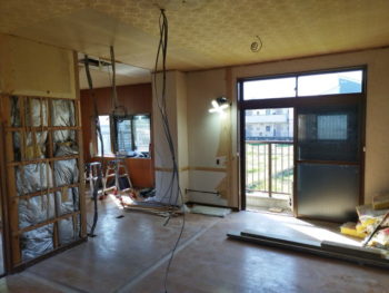 壁撤去作業が大変です。