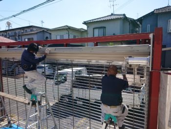 ガレージ ステンレスカーテンシャッター取付