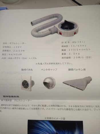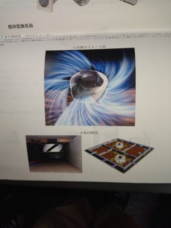 リビング型は攪拌型のシロッコタイプの換気扇の設置です。
