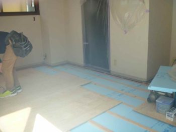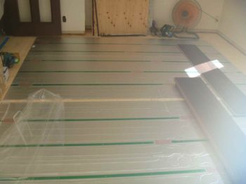 床断熱材施工後下地を張って床パネルを施工させて頂きました。