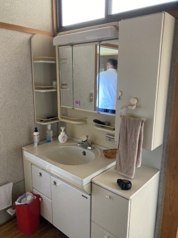洗面化粧台は収納充実を目指します。