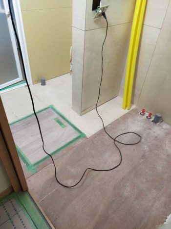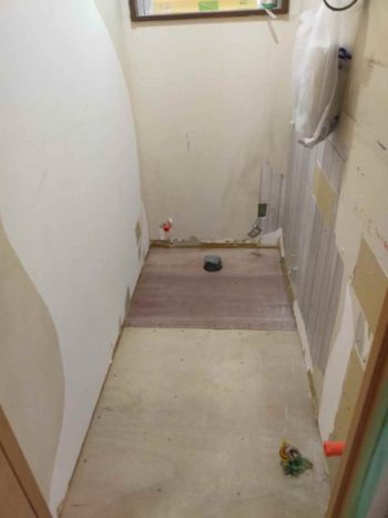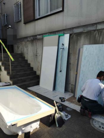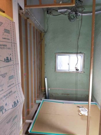 水廻り部分・解体(配線・配管下地)も終わりシスバス組立作業を進めています。