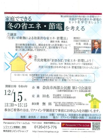 家庭でできる冬の省エネ・節電セミナー!