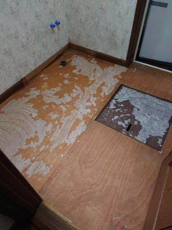 | 床のクッションフロアーも張替えです。 | ||