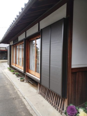 木製雨戸を金属雨戸に取り替え