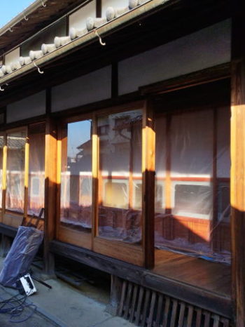 奈良市のD様邸、今日は古民家の縁側の床板と雨戸取替と