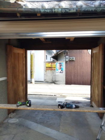 古民家の門屋の電動シャッター工事。