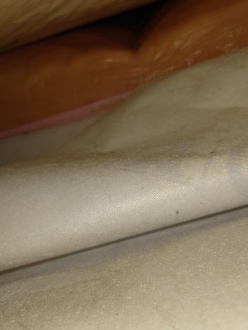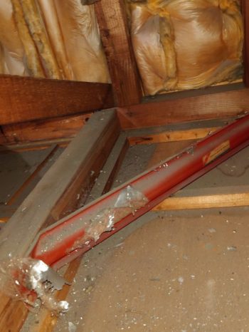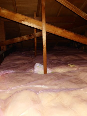 巻き込みでした。小屋裏の断熱材に雨の溜まりあり