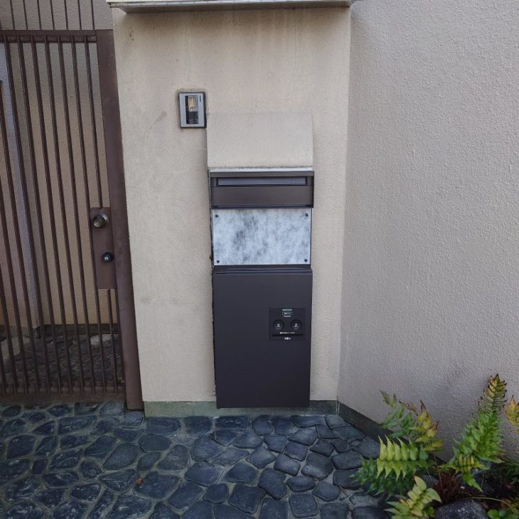 上部がポストと下部が宅配ポストで、前入れ後ろ出し仕様です。
