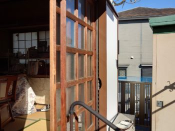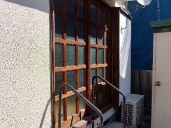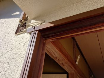 毎日出入りする掃き出し木製障子枠のいがみと木製雨戸の