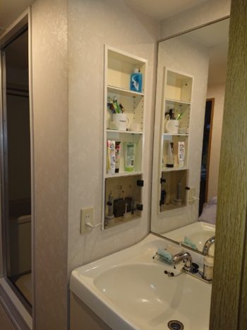 一面鏡から三面鏡に 収納アップ
