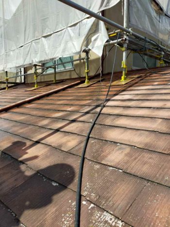最初に屋根の洗浄です!