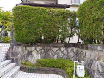 植木を撤去して、既存ブロック土留めに穴を開け