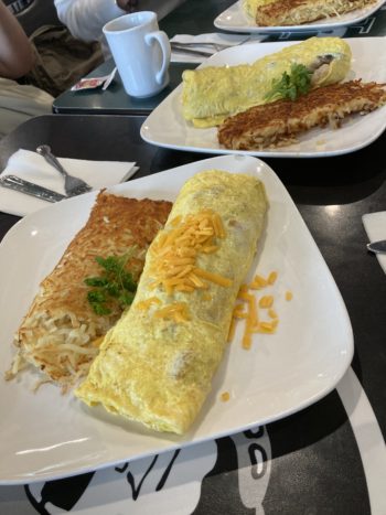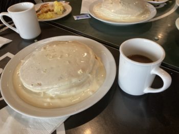 パンケーキが有名なブーツ&キモズでマカデミアナッツソースのたっぷりかかったパンケーキとオムレツをいただきました。