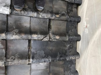 現場確認にて瓦の割れズレによる隙間からの
